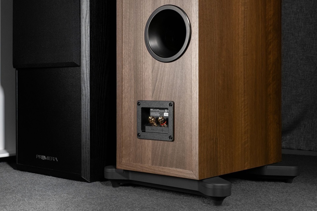 На задней панели кроме фазоинвертора имеется док с парой клемм для кабелей. Для лучшей устойчивости используются алюминиевые, разведенные в стороны опоры с шипами. Расцветок кабинета три на выбор: матовый белый, матовый черный и орех, магнитные грили всегда будут в комплекте. В общих чертах, Q11 Meta выглядят как полностью готовые к аудиофильским стартам напольники. К отделке кабинета вопросов никаких, даже под самым строгим оценивающим взглядом. Также с линейкой Q можно сформировать домашний кинотеатр: доступны модули для Atmos, полочная акустика и сабвуфер.