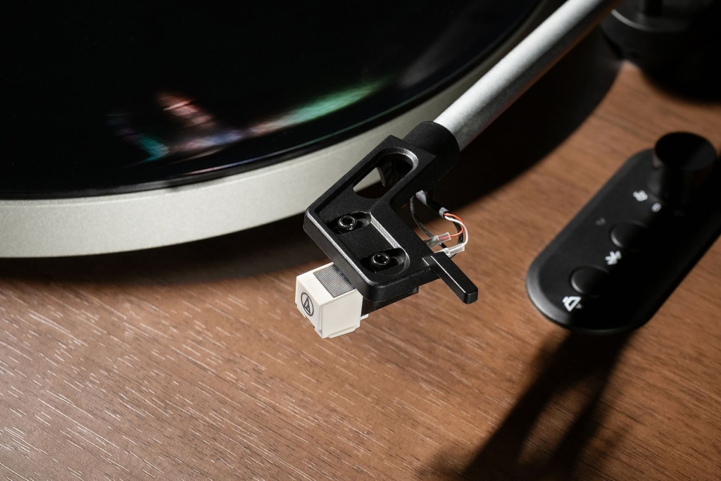 Проигрыватель оснащен автоматикой: при смещении тонарма в сторону пластинки он начнет воспроизведение, а в конце пластинки он автоматически остановит вращение опорного диска. Система работает исправно, но для тех, кто хочет все делать своими руками, функции ее отключения не предусмотрено. Встроенный блок питания обеспечивает стабильную работу встроенного ММ-фонокорректора, модуля Bluetooth 5.3 и модуля электронного управления двигателем с точной коррекцией частоты вращения на 33 и 45 об/мин.