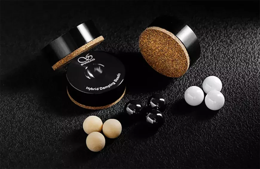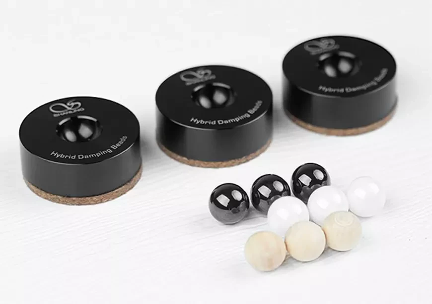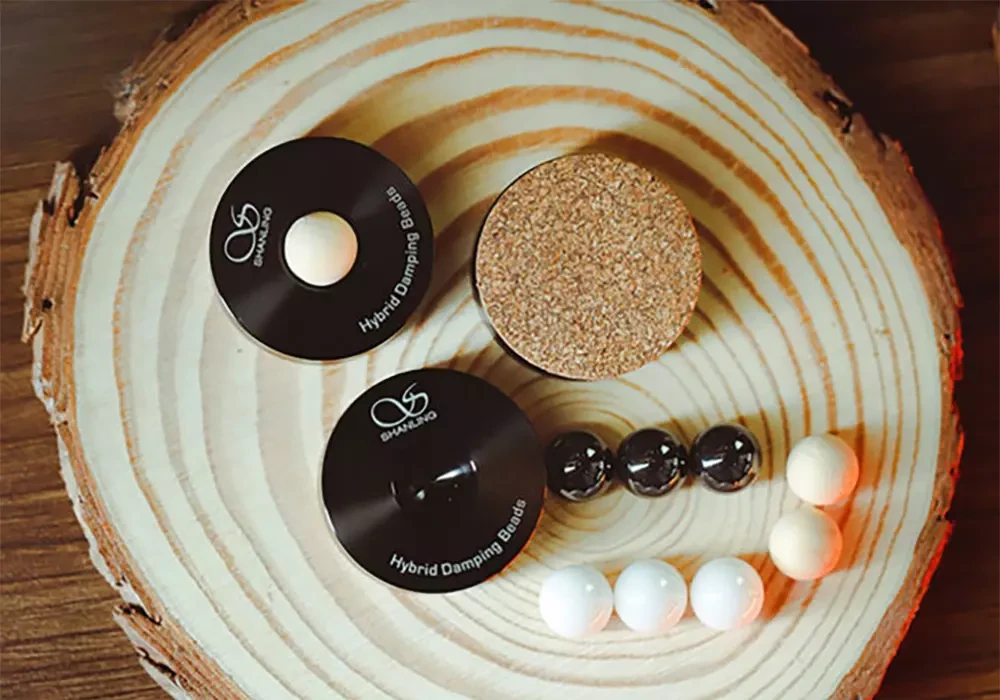 Опоры Shanling Isolating Feet имеют многослойную конструкцию. Прочная алюминиевая база обеспечивает механическую жёсткость, а слой пробки демпфирует прямой контакт с корпусом устройства. Базовую конструкцию дополняют сменные опорные элементы из дерева, керамики или стали, позволяющие целенаправленно влиять на резонансные свойства. Таким образом, Shanling следует практичному подходу, учитывающему различные массы устройств и сценарии использования.