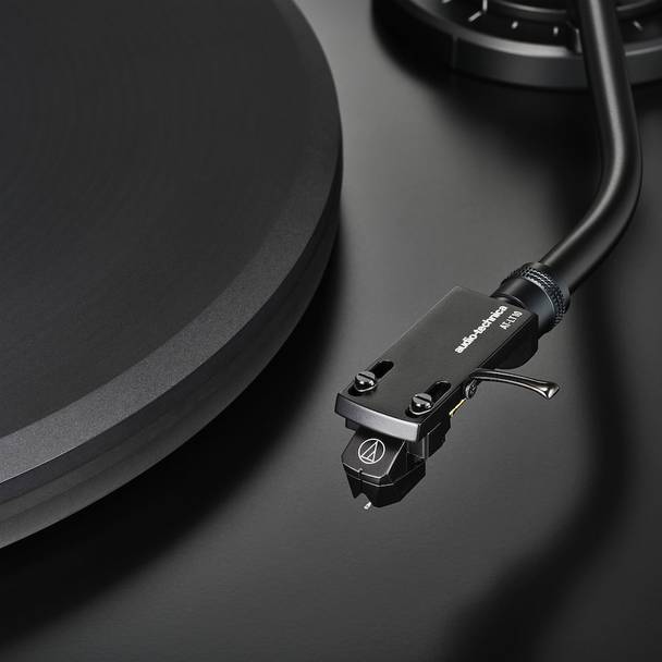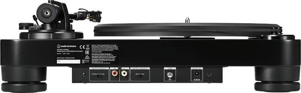 Тонарм — J-образный с двухосевым карданным подвесом и прецизионными шариковыми подшипниками. Хедшелл — AT-LT10 с предустановленным картриджем AT-VM95E BK. Опорный диск толщиной 20 мм выточен из акрила, стабилизация двух скоростей вращения — с помощью оптического датчика.