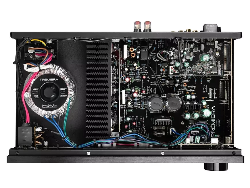 Конечно, главная фишка новой модели, это расположенные точно по центру фронтальной панели стрелочные индикаторы уровня выходного сигнала, мягко подсвечиваемые светодиодами. Они заменили собой цифровой дисплей оригинальной модели (которая, к слову, по-прежнему продается), в результате чего немного пострадала информативность, правда, не сильно – активный вход обозначается подсветкой соответствующей кнопки. Так что понять, какой именно источник задействован в каждый конкретный момент, несложно. Хуже дело обстоит с воспроизведением файлов с флешки – без дисплея не так удобно переключать треки, однако тут каждый делает свой выбор сам. На наш взгляд, «Париж стоит мессы», то есть это вполне оправданное неудобство для того, чтобы получить на фронтальной панели красивые стрелочные индикаторы. В комплекте поставки идет универсальный инфракрасный пульт ДУ, способный управлять различными компонентами Premiera. Модель предлагается в двух цветах – чёрном и серебристом.