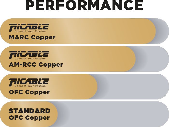 Еще одна проприетарная технология, R—TEC (Ricable Technology Construction), является по сути целым комплексом, касающимся изоляции, экранов и самой конструкции соединителей. Имеет конкретные реализации в разных сериях кабелей. Важной ее частью является еще одна фирменная разработка — RNR (Ricable Noise Reduction). Ключевым его элементом являются полупроводниковые материалы, содержащие германий. Он может включаться в композитный экструдированный слой диэлектрика или в состав фольги. Во всех случаях это существенно снижает уровень фоновых шумов, делая звук особенно прозрачным, сохраняя при этом точный тональный баланс. Подробности компания не раскрывает по вполне понятным соображениям.