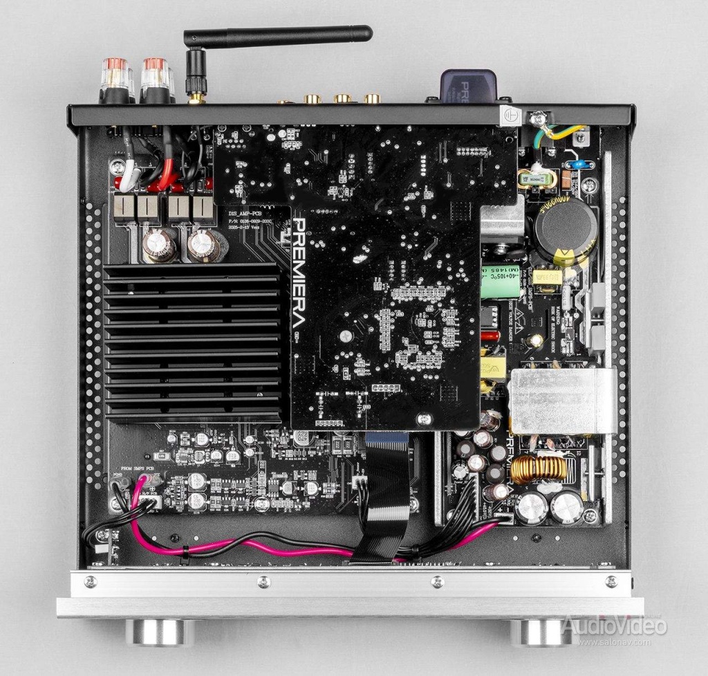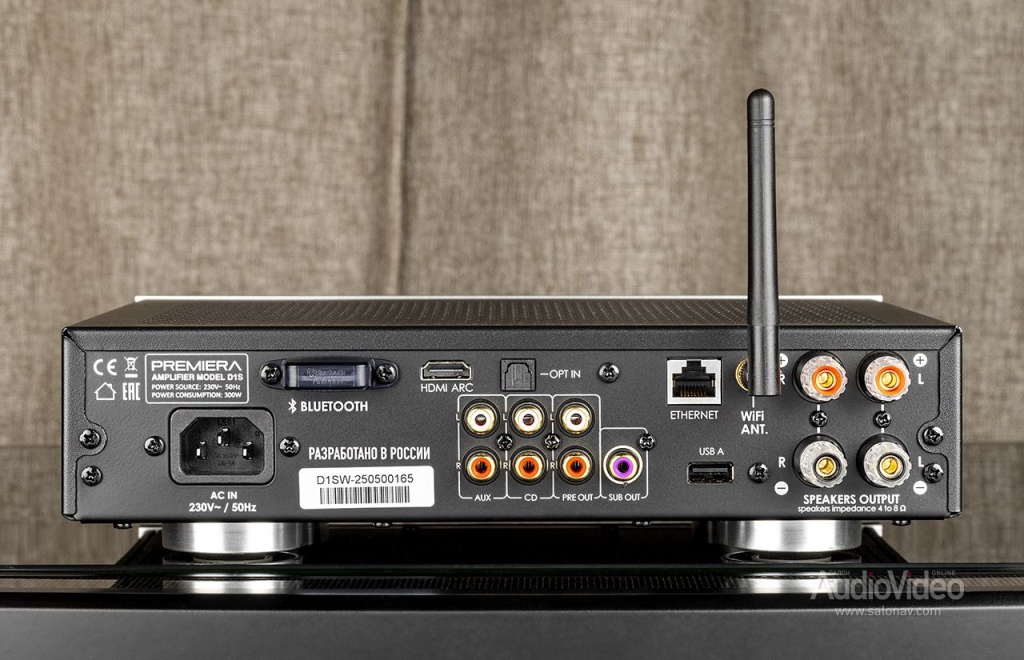 У нас на испытании — горячая новинка от российского бренда Premiera, усилитель класса D со встроенными цифровым проигрывателем, ЦАПом и поддержкой наиболее популярных беспроводных и сетевых технологий. При достаточно компактных габаритах мощность у него приличная, 2 х 101 Вт (4 Ом).