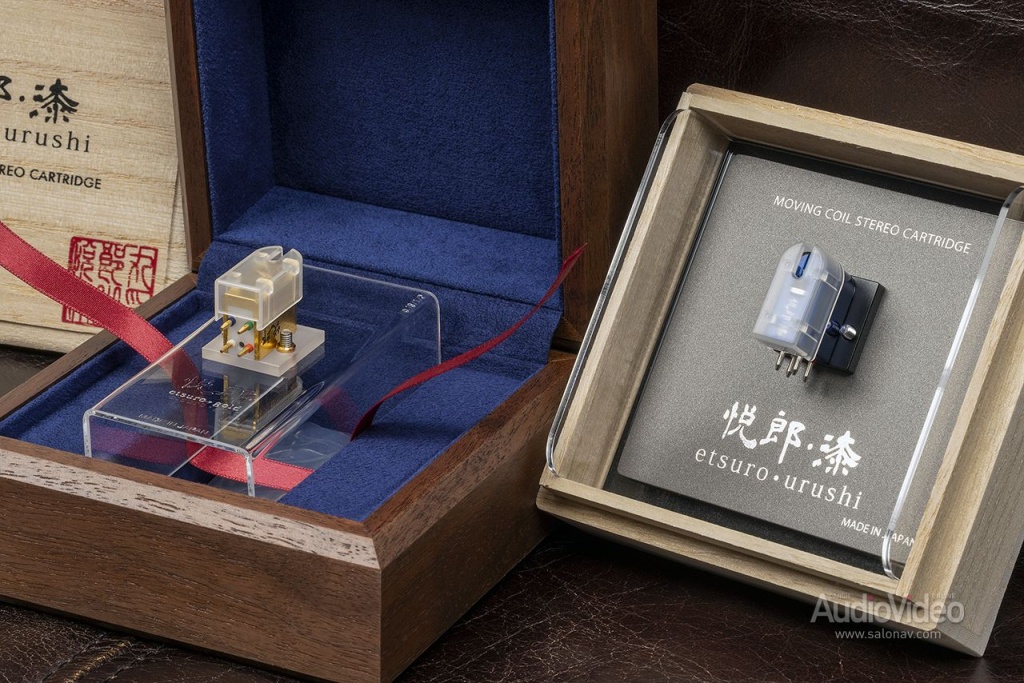О картридже Etsuro Gold, установленном на проигрывателе, стоит рассказать особо. Это верхняя модель японской компании Etsuro Urushi. Напомню, что Urushi это натуральный лак с особыми свойствами, которым покрываются корпуса головок. Но у флагманской Etsuro Gold он отделан не лаком, а покрыт фольгой из чистого золота 24K. Эту тонкую работу вручную выполняет мастер из специализированной фирмы Hakuichi Co., Ltd в городе Каназава.