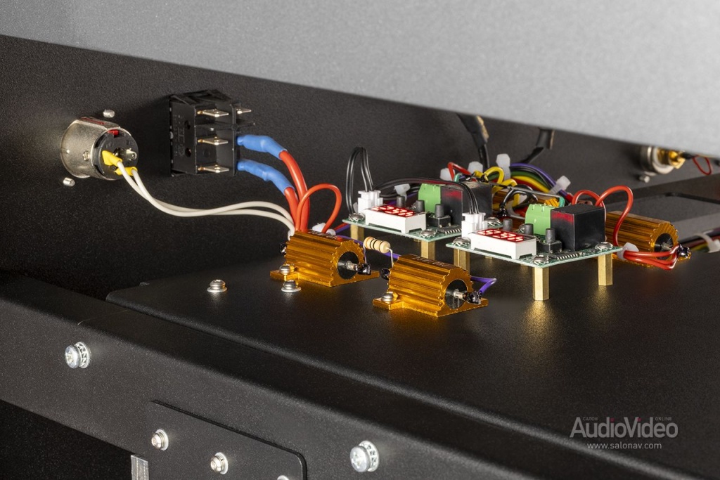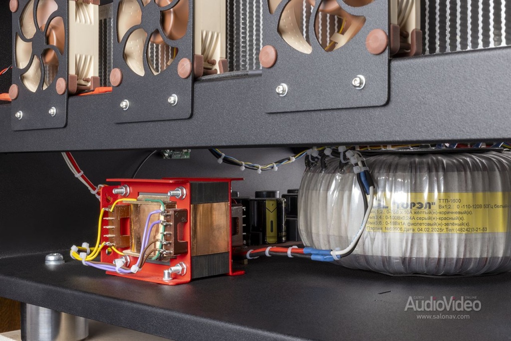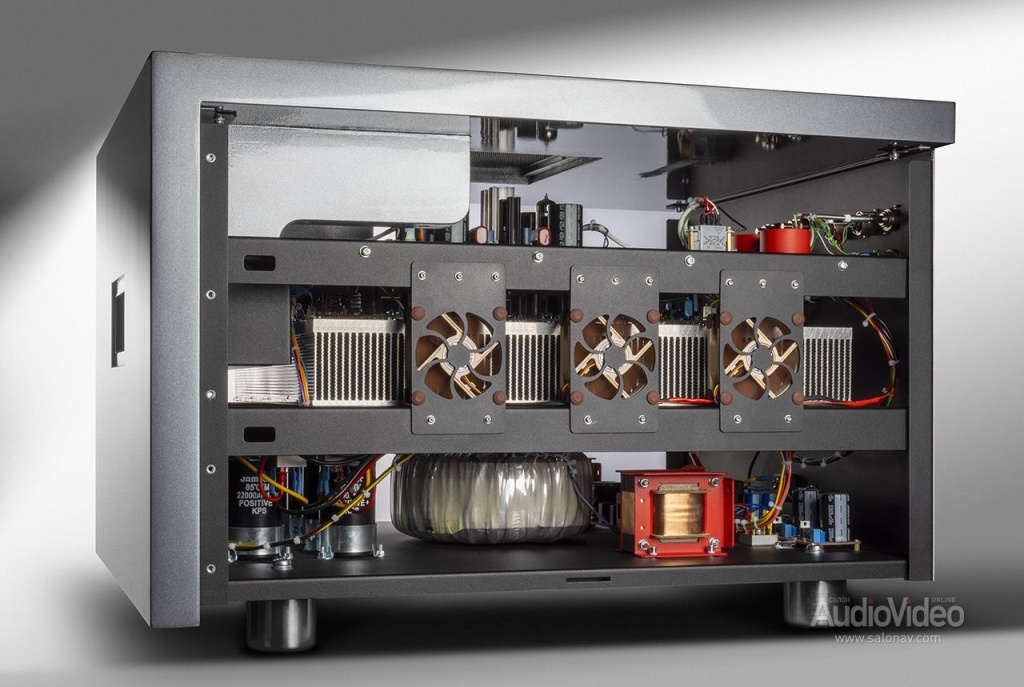 Рекордные энергетические показатели обеспечиваются 5-киловаттным тороидальным трансформатором и набором конденсаторов общей ёмкостью около двух фарад. Питание к выходным транзисторам подаётся по шинам из чистой меди шириной 10 мм.