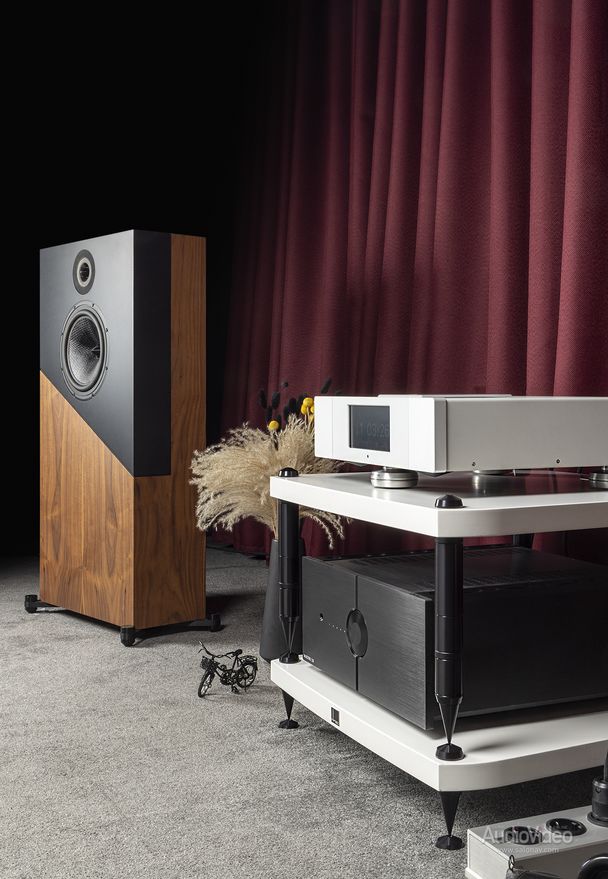 Система для испытаний сложилась у нас такая: CD/SACD-проигрыватель Métronome AQWO 2 (с возможностью стриминга) в качестве источника и двухполосные акустические системы Davis Acoustics The Stage. У них необычный форм фактор, допускающий установку вплотную к стене, приличная чувствительность (91,5 дБ) и солидный 10-дюймовый басовик.