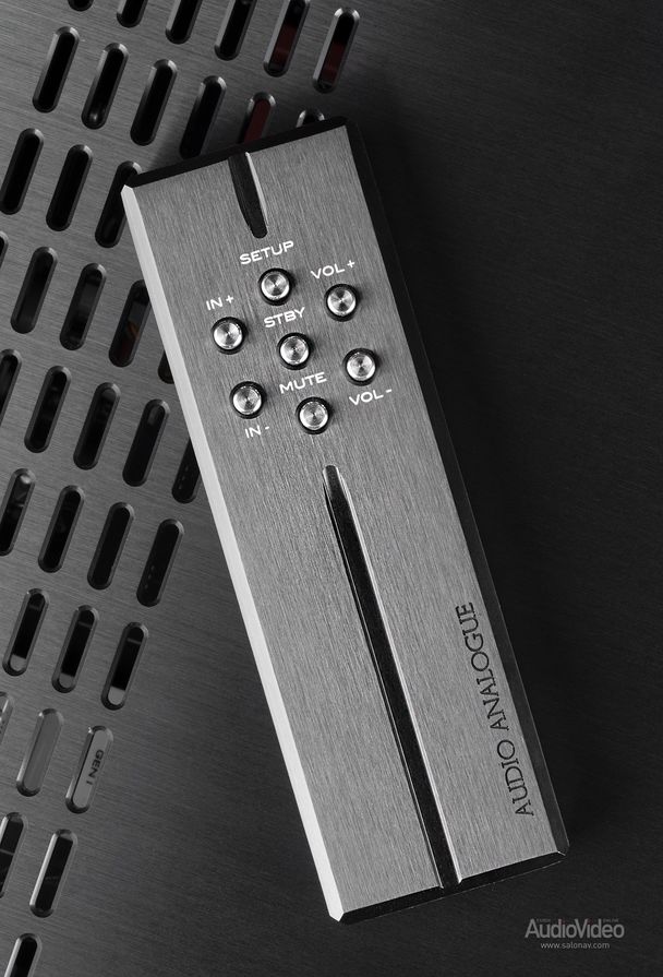 Пульт ДУ выточен из цельной алюминиевой заготовки в характерном стиле Audio Analogue. Как уже упоминал выше, корпус усилителя изготовлен практически вручную в Италии, конструкция разработана компанией AirTech. Масса Maestro 2.0 внушает — 49,5 кг.