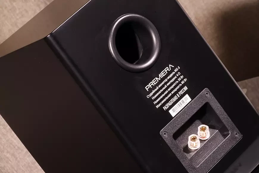 Заявленная производителем чувствительность системы составляет 81 дБ / 1 Вт / 1 м, но здесь надо отметить, что столь низкое значение естественно для условий, при которых производились измерения. А проводились они в «безэховой» камере Brüel & Kjær, в реальных же условиях эксплуатации и типовой комнате прослушивания результат будет гораздо ближе к привычным для данного класса АС значениям – порядка 87 дБ / 1 Вт / 1 м. Номинальное сопротивление Premiera MS-5 составляет 4 Ома, правда, производитель не указывает, на какую частоту приходится минимум импеданса. Рабочий частотный диапазон простирается от 44 Гц до 20 кГц по уровню +/- 3 дБ. Заявленная долговременная мощность составляет 50 Ватт при пиковой до 80 Ватт.