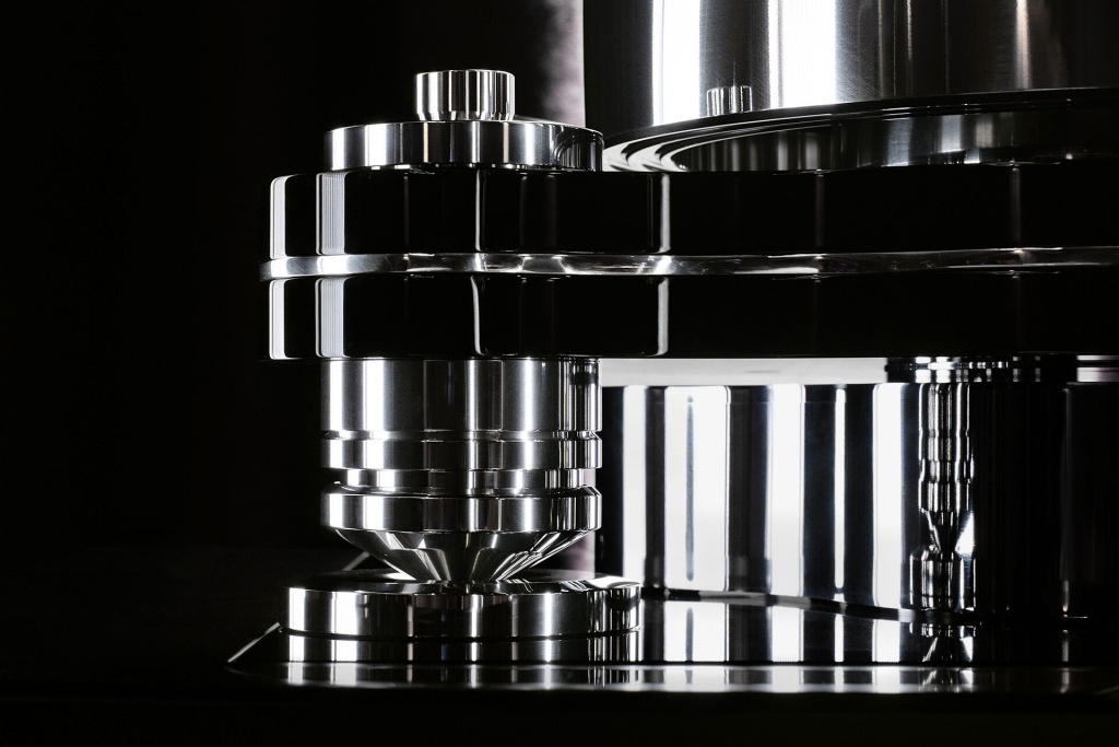 Мощный инвертированный подшипник с системой циркуляции масла и основной тяжелый алюминиевый диск с кольцевыми «волнами» на нижней поверхности — это все в традициях производителя и используется в разных моделях. Штатный акриловый мат, не предусматривающий замену, и клэмп тоже знакомы по другим моделям. Transrotor можно всегда легко опознать, даже если убрать все надписи и логотипы.