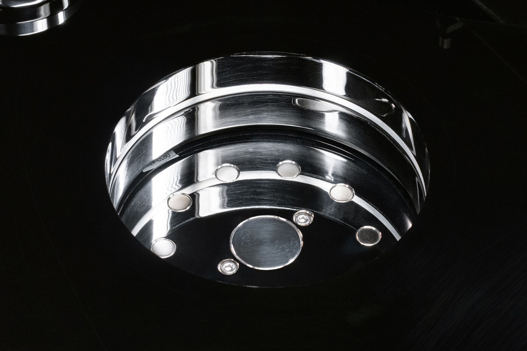 А проигрыватель, хоть он и не новинка, внимания безусловно заслуживает, поскольку конструкция у него интересная. Во-первых, это модель, с которой начинает использоваться магнитный привод FMD, во-вторых, на него можно устанавливать до трех тонармов.
