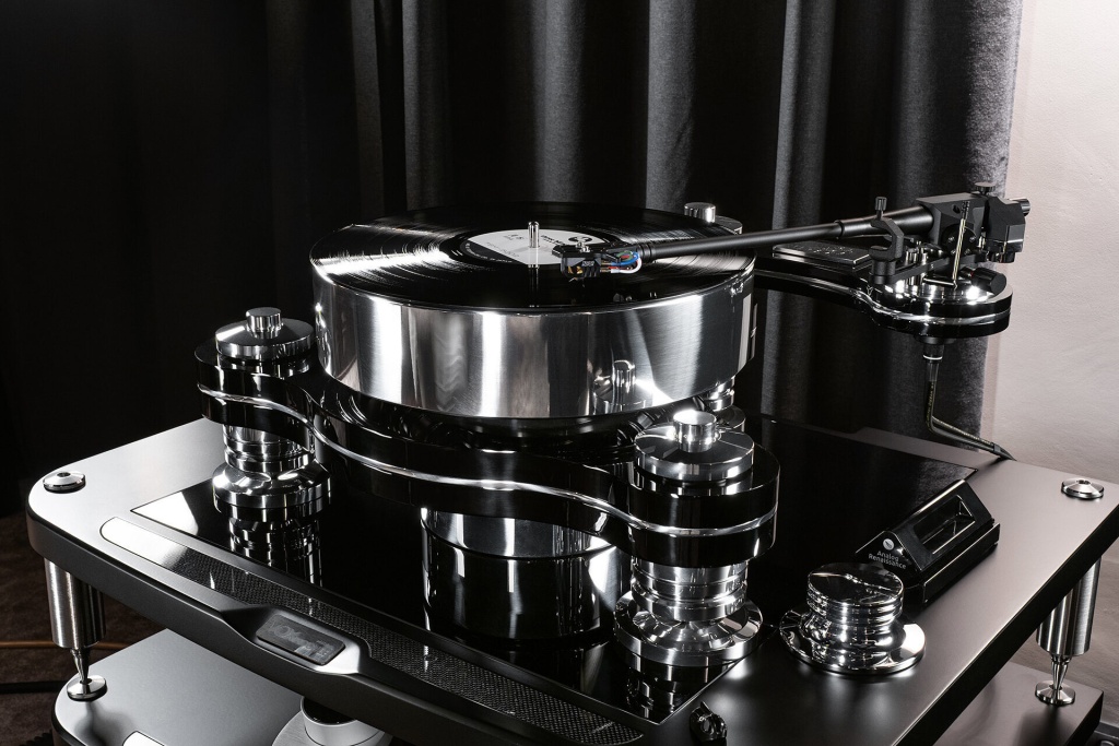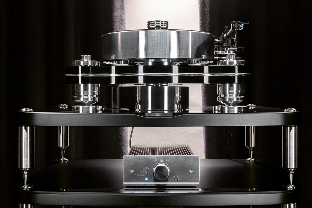 Стол проигрывателя — сэндвич из двух акриловых панелей и алюминиевой прослойки. Ставится он на три регулируемые ножки-опоры, верхние части которых переходят в крепления регулируемых баз для установки тонарма. Базы могут быть с разными посадочными площадками, но по умолчанию это площадка стандарта SME. Устанавливать можно как 9-, так и 12-дюймовые тонармы. Поставить можно до трех тонармов — при условии, что конкретные модели не будут мешать друг другу. 9+12 или 12+12 ставятся вообще без ограничений, а все остальные случаи нужно просчитывать индивидуально.