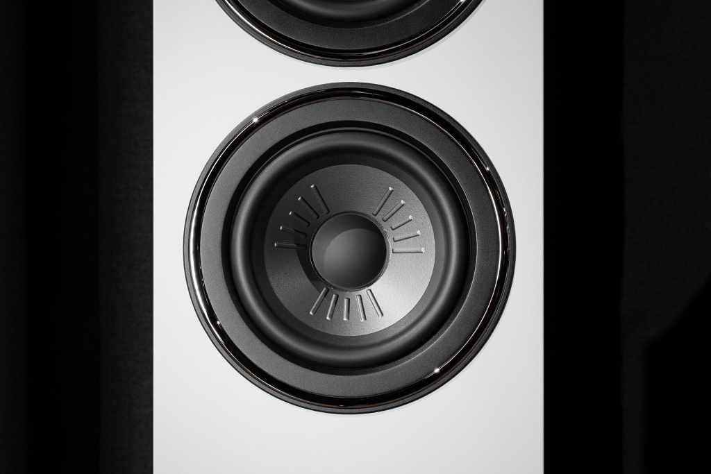 Пара динамиков размером 130 мм никак не изменилась: диффузоры изготовлены из материала Klarity — специальной смеси полипропилена и слюды, которая обеспечивает необходимую жесткость и низкий уровень искажений. Из этого материала получается легкий, хорошо демпфированный диффузор с высокой устойчивостью к акустическим нагрузкам. Ребристая форма профиля задействует британские чит-коды и придает динамикам еще больше жесткости при высоких нагрузках, при этом оптимизируя линейность частотной характеристики и минимизируя искажения.