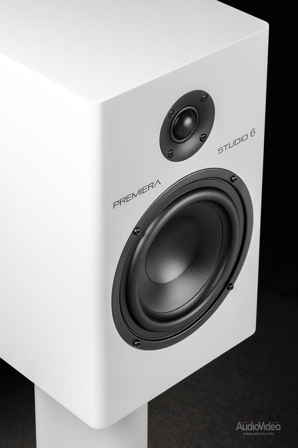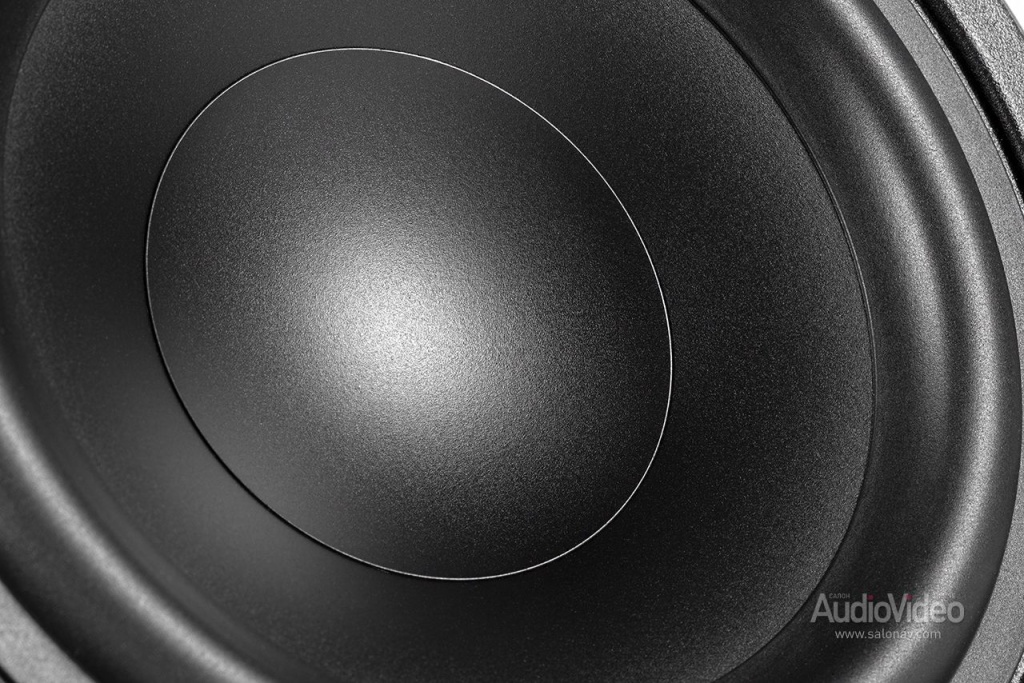 Корпус Studio 6 крупнее, чем у недавно испытанных Studio 5, но главное отличие в том, что калибр мидбасового драйвера здесь уже не 5, а 6,5 дюймов, что позволило понизить басовую границу с 44 до 40 Гц. Полипропиленовый диффузор, имеющий форму вогнутой полусферы, имеет повышенную жёсткость, т.е. меньше деформируется на больших амплитудах, и искажения при этом минимальны. Кроме того, свою лепту вносит и солидная магнитная система — звуковая катушка в однородном поле движется симметрично в обе стороны. Драйвер работает в фазоинверторном оформлении с портом на задней стенке корпуса.