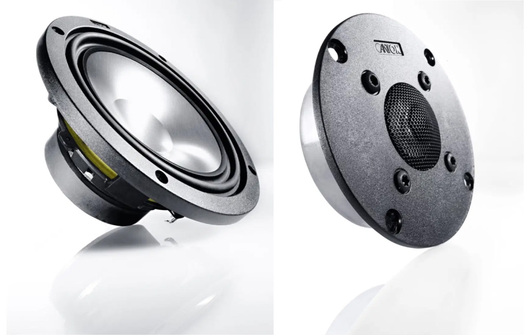 В 20-ом веке алюминиевые мембраны излучателей стали значимым шагом в развитии технологий, но в веке 21-ом разработки продолжились. И суть изысканий ясна – получить материалы с отличными демпфирующими качествами, а также наилучшим соотношением высокой прочности и малой массы. Сегодня в диффузорах Canton чистый алюминий применяется только в бюджетной акустике. В колонках постарше используются уже титановые драйверы СЧ/НЧ-звена и твитеры из алюминий-марганцевого сплава. В старших сериях Hi-Fi, таких как Vento, в дело идут уже двойные диффузоры из титана и графита в СЧ/НЧ, а также керамические твитеры, которые производятся методом анодирования алюминиевых заготовок.