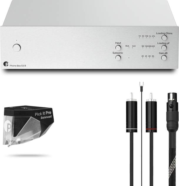Набор совместим с проигрывателями компании, имеющими выходом на разъемах RCA (без встроенных фонокорректоров и дополнительной электроники). В него входят MM-картридж Pick it PRO B, корректор Phono Box S3 B и фонокабель с разъемами RCA и mini-XLR.