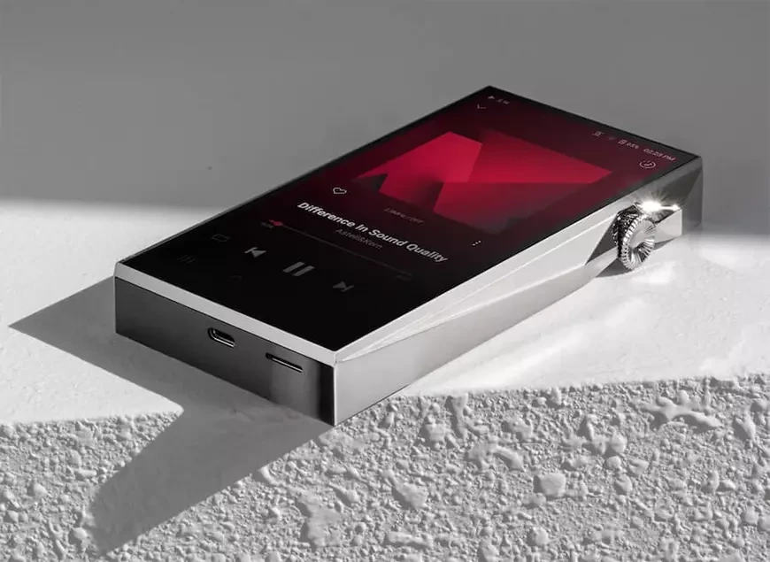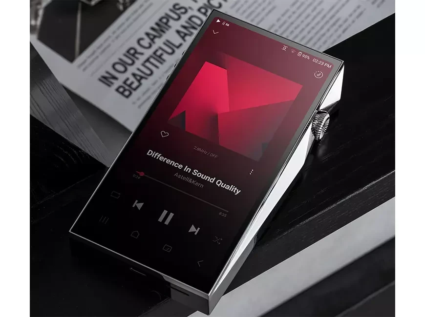 Интерфейс с тематикой Crimson предлагает визуальные эффекты — например, анимацию c виниловой пластинкой при воспроизведении альбомов. Дизайн подчёркивает простоту, выразительность и интуитивность, при этом снижая нагрузку на зрение и расход батареи. Проигрыватель комплектуется чехлом из телячьей кожи от Perlinger — немецкой кожевенной мануфактуры с 160-летней историей. Кожа обрабатывается уникальными способами, чтобы сохранить органическую текстуру и яркость цвета.