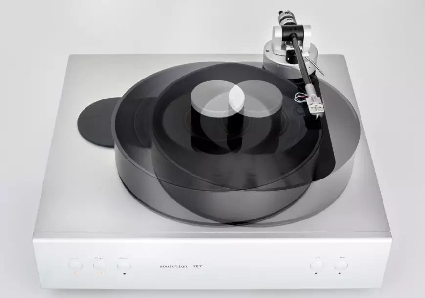 Швейцарский аудиобренд Soulution представил свой первый проигрыватель виниловых пластинок Soulution 787. По мнению производителя, новинка предназначена для аудиофилов, требующих исключительного совершенства. В проигрывателе Soulution 787 реализована концепция линейного трекинга, в которой используется движущийся (скользящий) опорный диск и обычный поворотный тонарм, который здесь работает с минимальным отклонением. Благодаря такому подходу ошибку трекинга удаётся свести к менее чем 0,15 градусов. Восьмидюймовый тонарм установлен на изолированном субшасси с системой подавления резонансов. Опорный диск скользит в сторону, чтобы тонарм оставался выровненным вдоль линейной дорожки отслеживания.