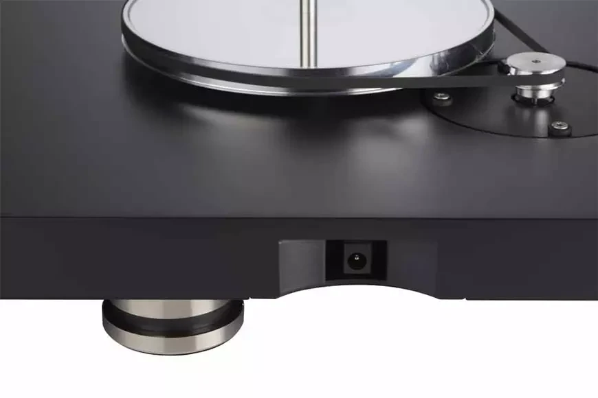 Опорный диск толщиной 20 мм выполнен из акрила, установлен на обработанной на станке с ЧПУ алюминиевой подложке и поддерживается полированным стальным шпинделем, вращающимся во втулке из спеченной бронзы с тефлоновой опорной подушкой. Точность скорости оценивается в ±0,05%, поддерживая скорости вращения диска 33⅓ и 45 об/мин.