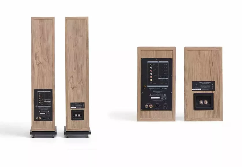Акустические системы серии Elipson Horus Active BT оснащены встроенным стереоусилением мощностью 50 Вт для каждого из каналов. Высокочастотный диапазон поручен твитеру с шёлковым куполом диаметром 25 мм и неодимовой магнитной системой. Остальная часть диапазона обслуживается динамиками с диффузорами из целлюлозной пульпы с армированием стекловолокном, которые работают в фазоинверсном оформлении. Всё это направлено на достижение максимально естественного и точного звучания. Колонки Elipson Horus Active BT предлагаются в трёх вариантах отделки: Light Wood, Walnut и Black. Сдержанная внешность выдержана в духе всей линейки Horus.