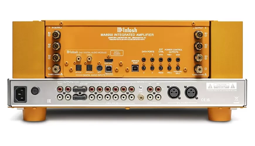Коммутационный арсенал усилителя включает девять аналоговых входов: один балансный, шесть небалансных, а также входы фонокорректора, как MC (с настраиваемой нагрузкой), так и MM. Помимо пятиполосного эквалайзера, усилитель оснащён цифровым аудиомодулем McIntosh DA2 на базе восьмиканального 32-битного чипа ЦАП.
