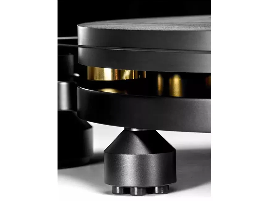 Точная рассчитанная система крепления тонарма, жёстко связанная с шасси, обеспечивает оптимальную передачу энергии и стабильность картриджа, минимизируя окраску звучания и обеспечивая точный контроль динамики, глубокий бас и сохранение нюансов музыкального сигнала.