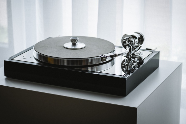Новый флагман модельного ряда Pro-Ject оснащается девятидюймовым S-образным тонармом EVO 9 AS HG, в опоре которого используются прецизионные подшипники ABEC 7. Вращение пластинки характеризуется высокой стабильностью – благодаря пассиковому приводу на базе генератора переменного тока. Опорный диск и тонарм полностью изолированы от внешних вибраций. Переключение скорости (33 и 45 об./мин.) – электронное. У проигрывателя есть небалансные RCA и балансные XLR-выходы. Добиться идеально точного уровня по горизонтали позволяют регулируемые по высоте опоры. В комплект поставки входят фирменные аксессуары: коврик Leathet It из натуральной кожи, защищающий пластинку от загрязнений и вибраций, и прижим Clamp It для гашения резонансов.