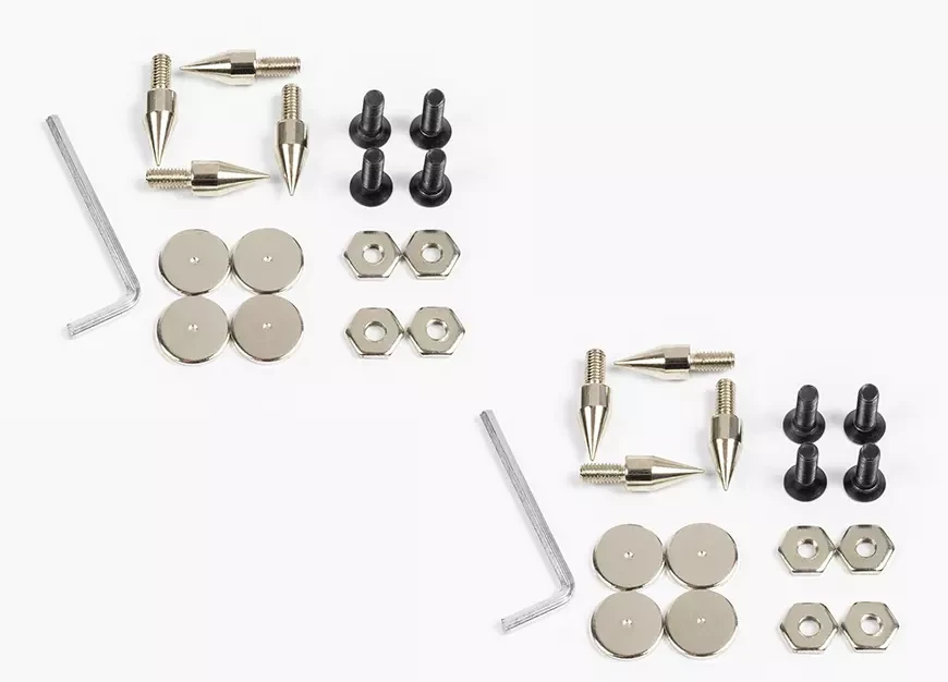 Акустическая развязка и чистота звучания – высота 625 мм позволяет расположить высокочастотные динамики колонок на комфортном для прослушивания уровне. Входящие в комплект стальные шипы минимизируют площадь контакта с полом, гасят вибрации и резонансы.